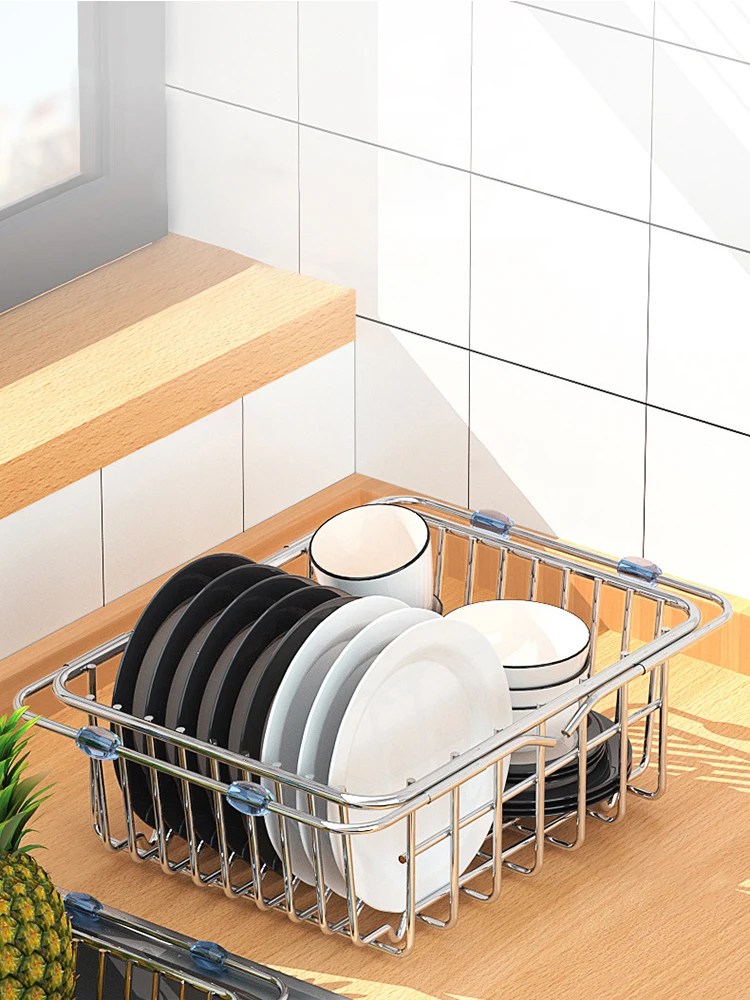 Sink drain rack: This dish drain rack is made of stainless steel, waterproof, rust-proof, durable. Long-term use.